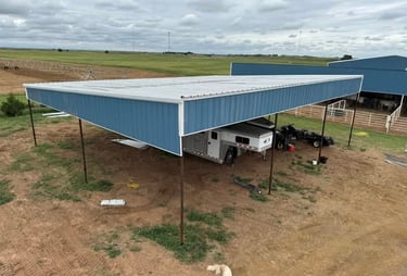 UP Industries, LLC also supports a wide range of agricultural, farm and ranch needs. We design and build full agricultural barns as well as equipment and trailer covers, metal hay covers and animal shelters of all kinds. Each build is tailored to your property and your use.